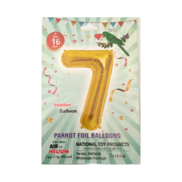 16 Inch Parrot Birthday Party Foil Balloon Number - 7 (Fills With Air or Helium)