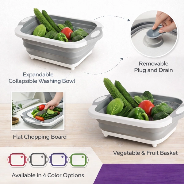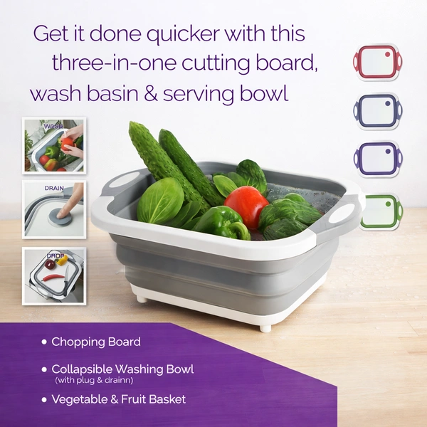 3-in-1 Folding Cutting Board with Collapsible Wash Basin & Drain Basket