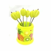 - Color Fruit Fork Stand with 6 Fruit Shape Stainless Steel Fruit Forks.