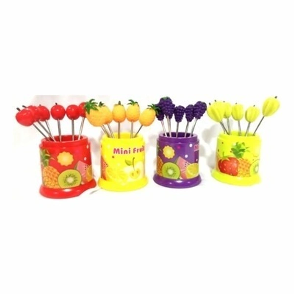 6Pcs Fruit Shape Forks with stand - Random Fruit Shape