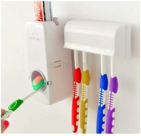 Automatic Plastic Toothpaste Dispenser with 5 Toothbrush Holder plain