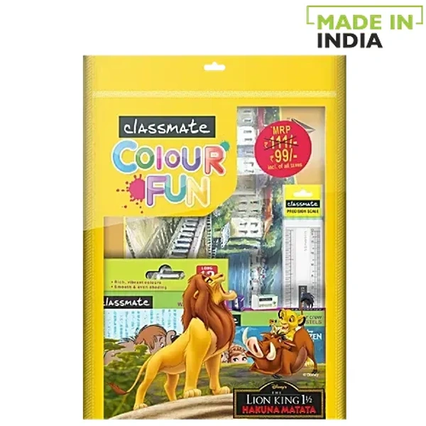 Unleash your child’s creativity with the Classmate Colour Fun Kit, a complete art and coloring set designed to make learning fun and engaging. This vibrant kit includes 12 jumbo wax crayons along with beautifully illustrated Disney-themed coloring books, featuring popular characters from Frozen and The Lion King.