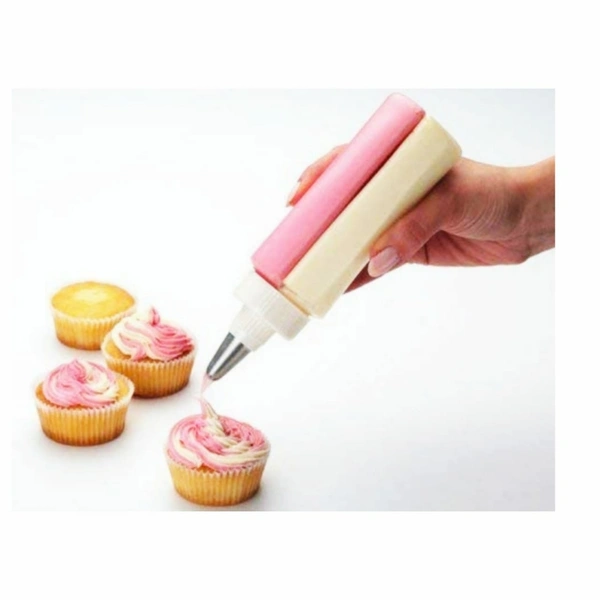 - Multi Utility Two Color Icing Piping Cake Cream Pastry Decorating Bottle with Stainless Steel Nozzle.