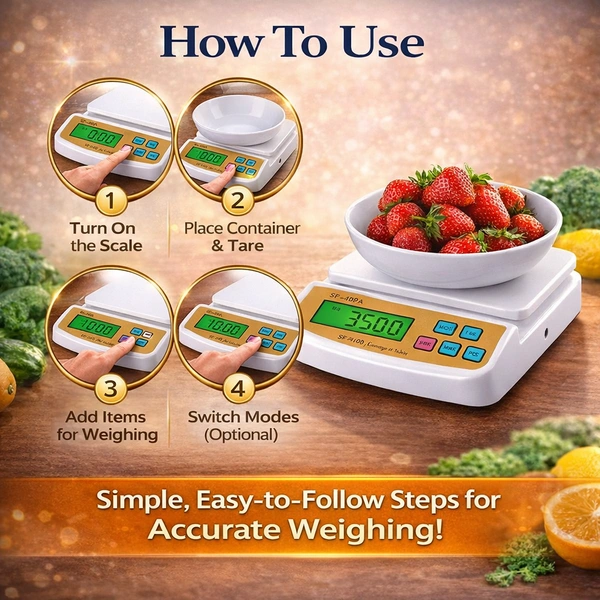 Upgrade your weighing experience with this Electronic Compact Digital Scale (SF-400A), designed for accuracy, convenience, and versatility. Whether you're measuring ingredients in the kitchen, handling retail items, or performing laboratory tasks, this compact scale delivers precise and reliable results every time.