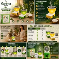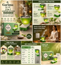 Transform your space into a peaceful and refreshing environment with the Garima 2-in-1 Camphor Diffuser with Night Lamp. Designed for modern homes, this electric kapoor dani not only diffuses the soothing aroma of Bhimseni camphor but also doubles as a soft night lamp to create a relaxing ambiance.