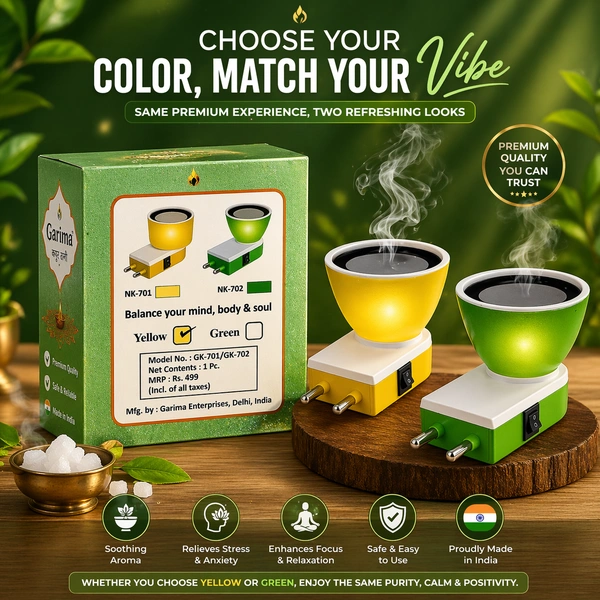 Built with advanced safety features like temperature control and short circuit protection, this diffuser ensures a worry-free experience. Available in attractive green and yellow colors, it blends functionality with style.
