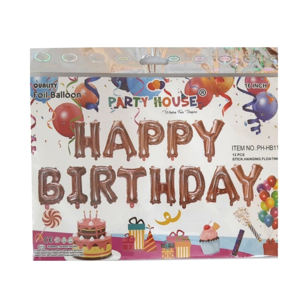 Happy Birthday Rose Gold Letters Foil Balloon - 13 Letters - 16 Inches