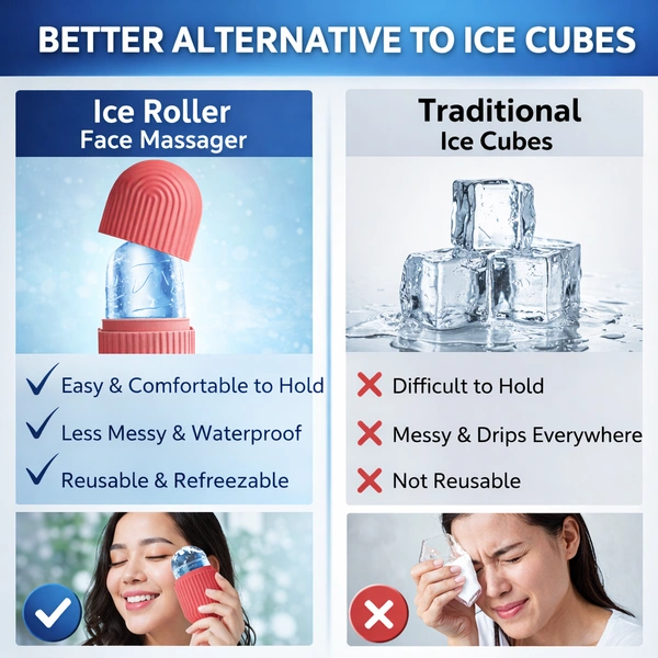 Experience refreshing skincare at home with the Ice Roller Face Massager. Designed to cool, soothe, and rejuvenate your skin, this reusable ice mold helps reduce puffiness, tighten pores, and enhance your natural glow.