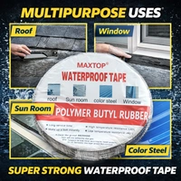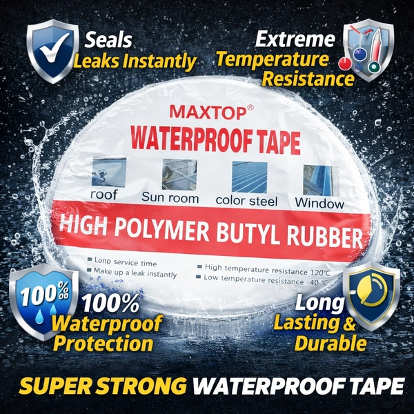 Stop leaks instantly with the MAXTOP Waterproof Tape, designed using high-quality polymer butyl rubber for superior sealing and long-lasting durability. This heavy-duty waterproof tape provides a strong, flexible bond that effectively seals cracks, gaps, and leaks on various surfaces such as roofs, windows, sunrooms, and metal sheets.