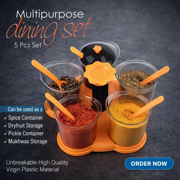 Multipurpose Dining Set – 5 Pcs Spice & Storage Container Set with Stand