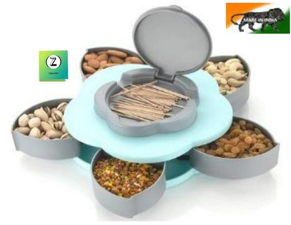 Multi-Purpose Flower Shaped Storage Box — 5 Grid Rotating Tray for Snacks, Dry Fruits, Spices & Treats (Pack of 1)