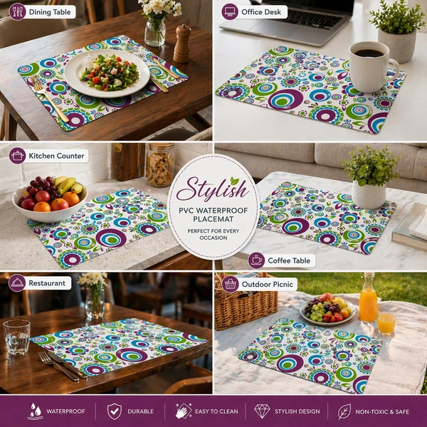 Multipurpose Set of 6 PVC Waterproof Placemats 44*28 cm/Table Mats for Dining Table ( Size: 44x29 cm)- Random colours