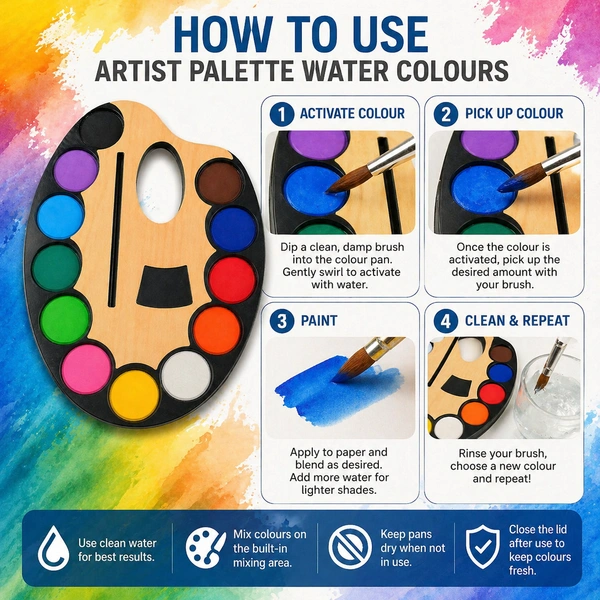 Artist Palette Water Colour Set for Kids & Beginners | 12 Vibrant Colours with Mixing Tray | Easy Grip Paint Palette (BIG) SIZE| Non-Toxic Washable Paint Kit for School & Hobby Use