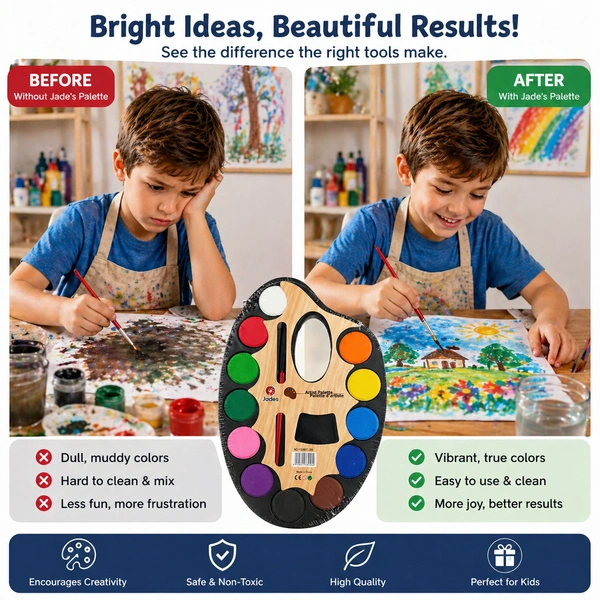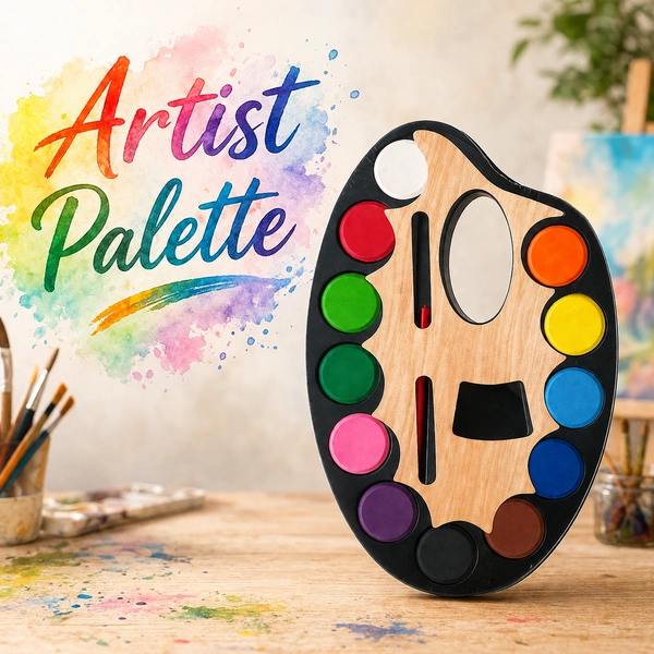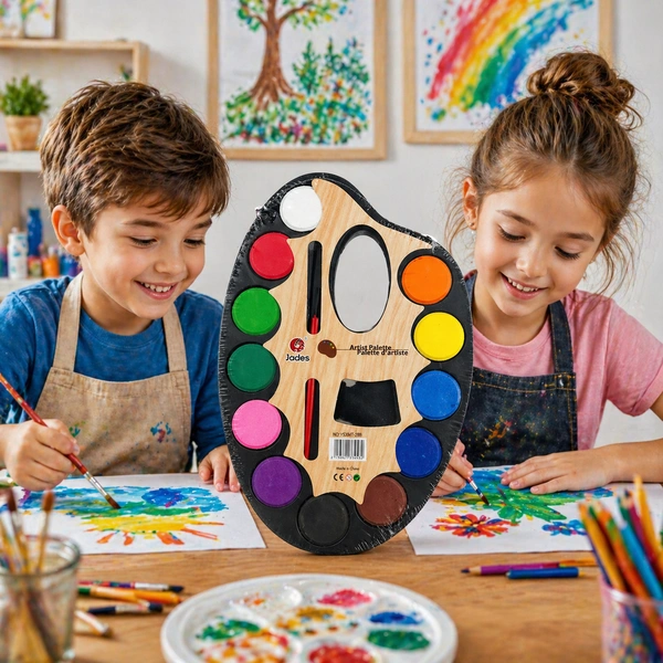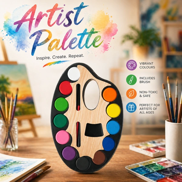 Unleash creativity with this beautifully designed Artist Palette Watercolor Paint Set. Featuring a unique wooden-style palette design, this compact and lightweight paint set includes 12 bright, vibrant colors and a paintbrush, making it perfect for kids, beginners, and hobby artists.