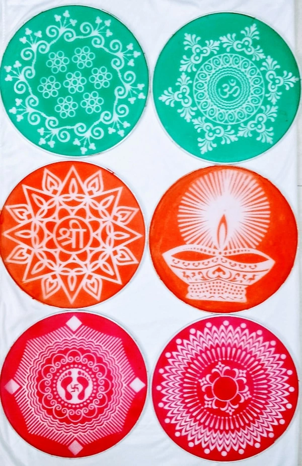 Rangoli Making Big Circular Stencils 12 Inch - Set of 6 - Assorted Designs - For New Year, Pongal and other festivals and events