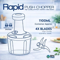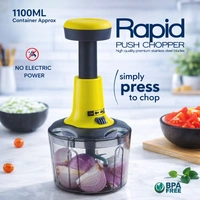 Upgrade your kitchen experience with the Rapid Push Chopper, designed for quick, effortless chopping without electricity. Featuring a 1100ml large capacity container and high-grade stainless steel blades, this compact tool delivers fast and uniform chopping with just a simple press.