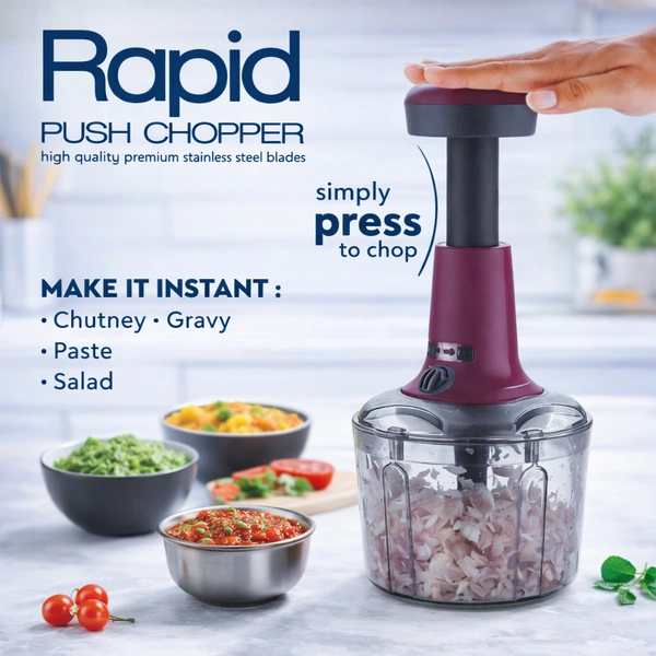 Whether you're chopping onions, vegetables, fruits, or nuts, the Rapid Push Chopper helps you save time and effort with precision and convenience.