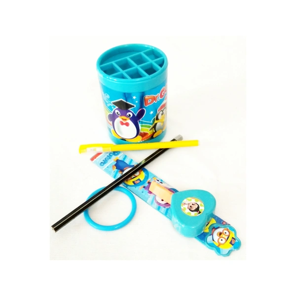 - A Stationary Set Which include Pen, Pencil, Sharpener, Eraser, Scale etc.