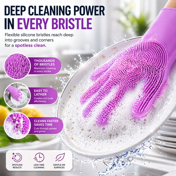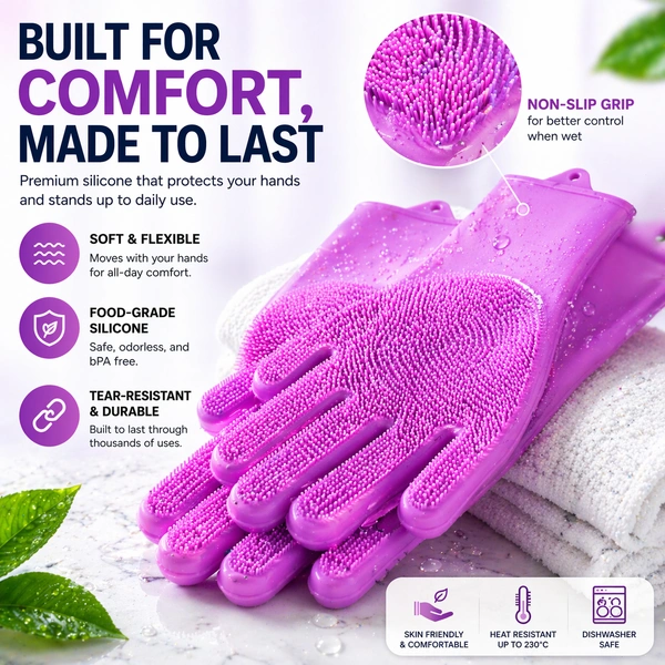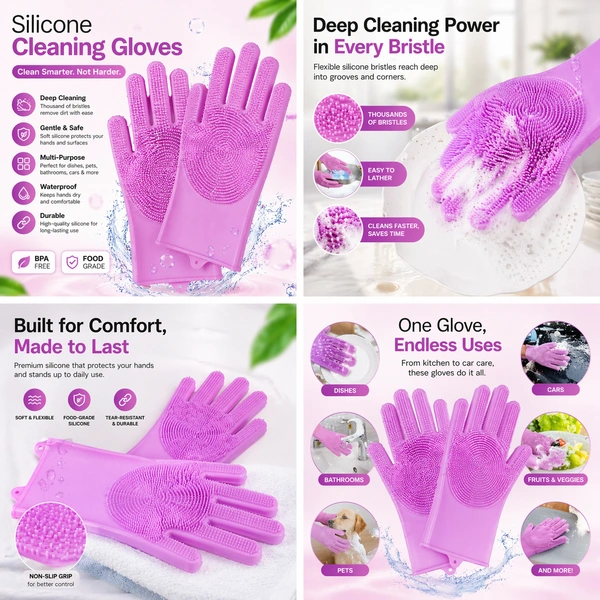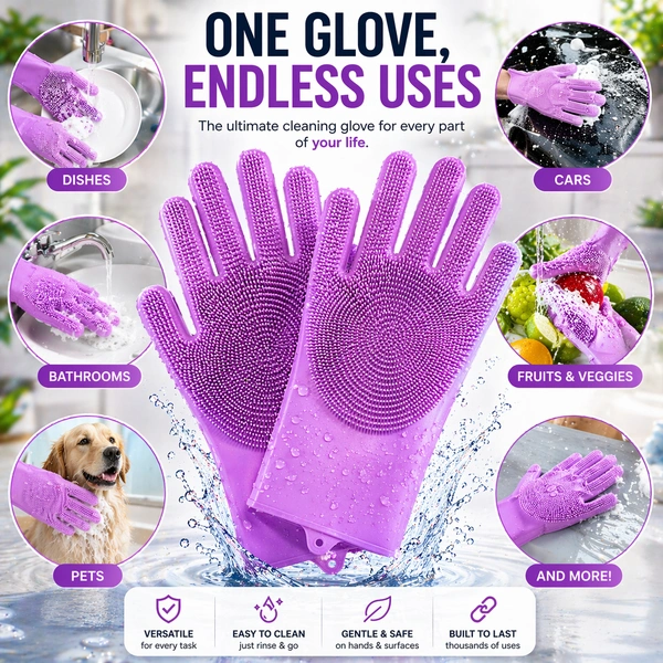 Made from premium food-grade silicone, these gloves are safe, durable, and built to last. Whether you're washing dishes, cleaning your bathroom, grooming pets, or even washing your car, this versatile glove does it all.