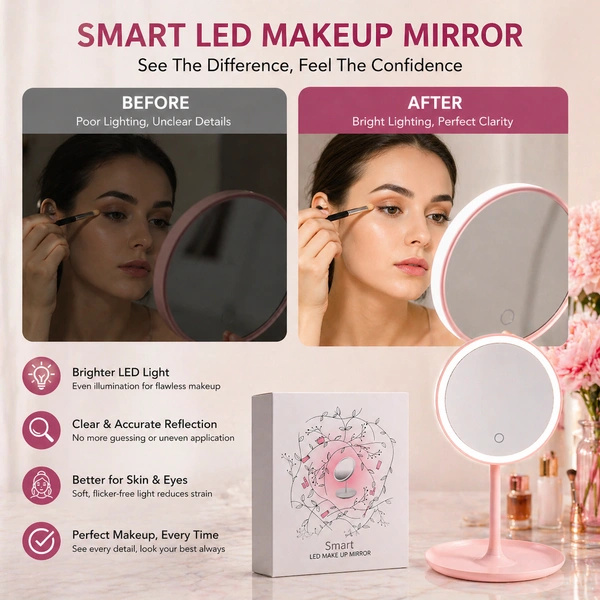 - Smart LED Lighting – Provides soft and even illumination for accurate makeup application
