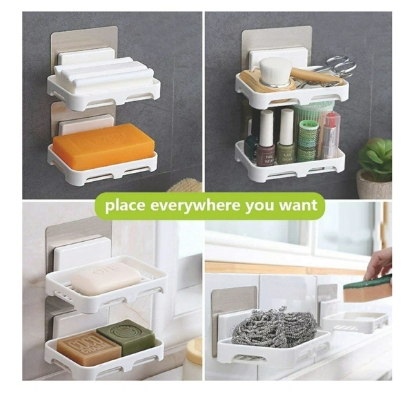 Soap Holder For Bathroom ABS Plastic Adhesive Waterproof Bathroom Soap Dish Holder Sticker - Set of 1