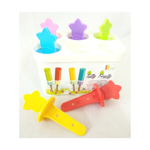 Tutty Fruity Ice Candy Tray, Kulfi Ice Popsicle Maker-BPA Free Homemade Ice Cream Molds (6 Cavity)