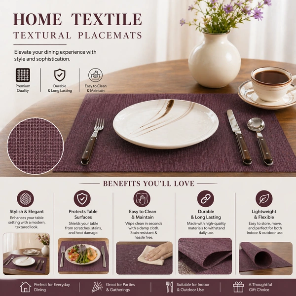 Washable Tablemats/Placemats Pack of 1 Heat Resistant Dining Table Place Mats for Kitchen Table Wedding Party, 12 x 18 inches, random colour